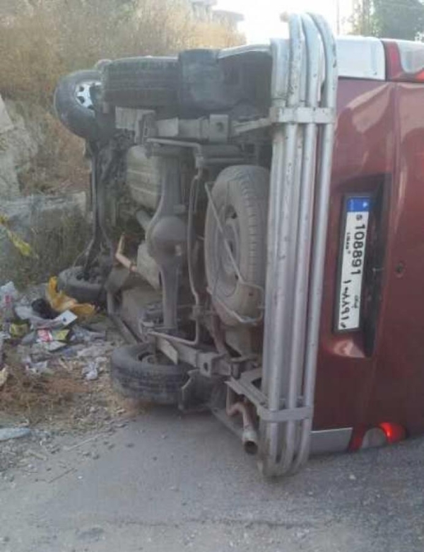 انقلاب الفان وتضرر السيارة في حادث سير مروع في منطقة تعمير حارة صيدا حيث مما ادى الى