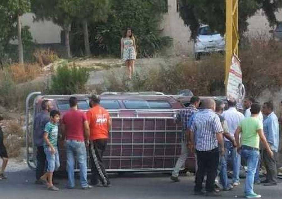انقلاب الفان وتضرر السيارة في حادث سير مروع في منطقة تعمير حارة صيدا