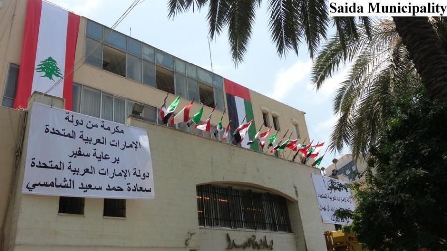القصر البلدي في صيدا إزدان بأعلام لبنان والإمارات ولافتات الشكر