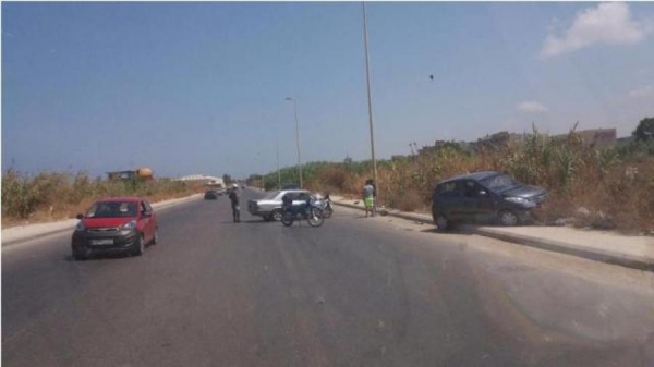 سير في منطقة سينيق عند مدخل صيدا الجنوبي حيث اصطدمت سيارة من نوع BMW فضية اللون بسيارة من نوع هيونداي i10 جردونية اللون التي استقرت فوق الرصيف.