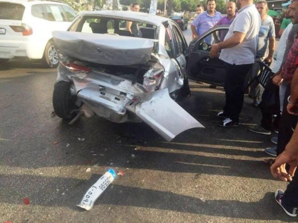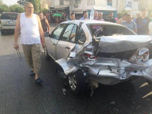 وفي التفاصيل، فقد صدم شخص يدعى محمد أ. كان يقود سيارة من نوع نيسان ذهبية اللون سيارة يقودها محمود ه. ما أدى إلى وقوع جريحين هما: محمود ه. 35 سنة أصيب برضوض في رأسه ويده، وسالي ح. 33 سنة، أصيبت ببعض الرضوض. كما أدى الحادث إلى أضرار مادية لحقت بكلا السيارتين.