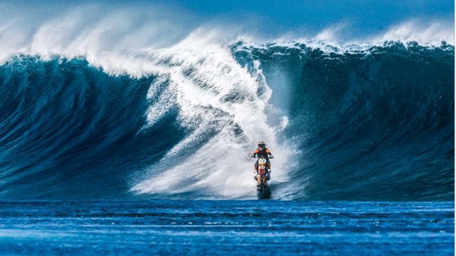 في تجربةٍ هي الأولى من نوعها... ركب الأمواج على دراجته النارية! (فيديو)