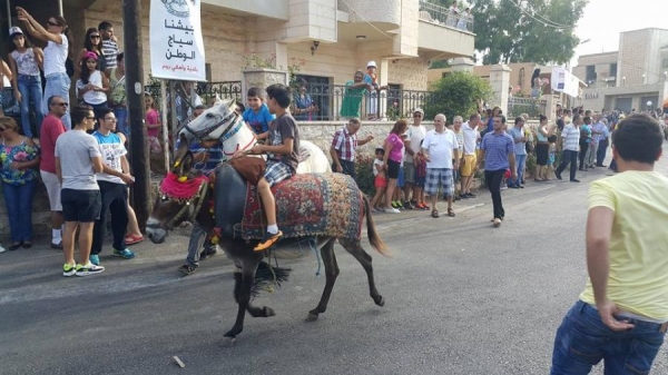 احتشد سكان بلدة روم والبلدات المجاورة في جنوب لبنان امس لمشاهدة سباق سنوي للحمير وهتفوا للمتنافسين في السباق. وأجرت الحمير تدريبات للإحماء في الشارع الرئيسي بالبلدة قبل انطلاق السباق. وبينما كان الصغار والكبار من سكان البلدة والبلدات المجاورة يهتفون ويصفقون لتشجيع الحمير كان المتسابقون يحفزون الحمير ضربا بالعصي لحثها على الاسراع وللفوز بالسباق