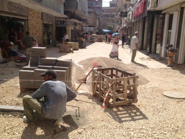 شااهد أعمال البنى التحتية الجارية لتأهيل اسواق المدينة التجارية وشوارعها