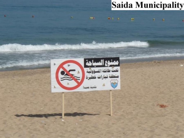 بلدية صيدا نشرت مزيدا من اللافتات التحذيرية على الشاطىء من مخاطر السباحة في منطقة التيارات البحرية