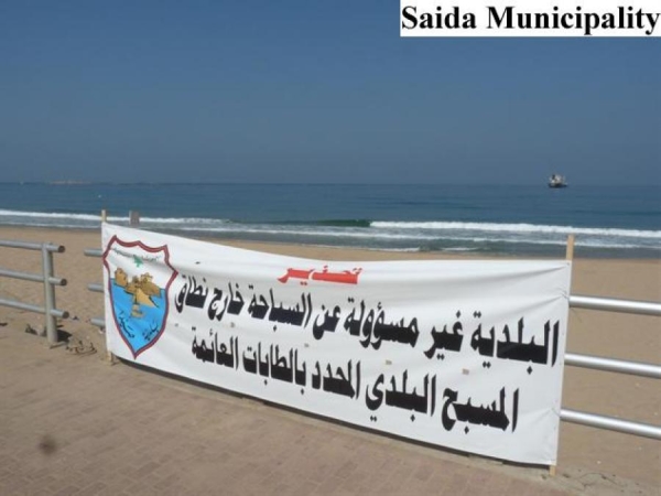 قامت فرق بلدية صيدا بتثبيت المزيد من اللافتات التحذيرية على الشاطى من مخاطر السباحة في منطقة التيارات البحرية واعتبارها منطقة يحظر السباحة فيها ، داعية المواطنين لارتياد المسبح الشعبي المتاح للعموم مجانا حيث يسهر فريق الإنقاذ التابع لبلدية صيدا على سلامتهم .