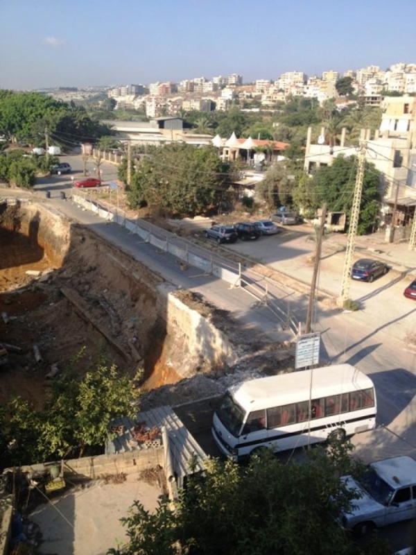 إنهار جدار الدعم للطريق الخلفي مع تدمير قساطل و أنابيب الصرف الصحي في حي القطعة منطقة الوسطاني قبل حي مكسر العبد، و ذلك أثناء قيام شركة مقاولات بحفر و إنشاء مشروع سكني. و قد حصل هذا الإنهيار بعدما تخطت الجرافات الحدود المسموح بها لجرف الرمال مما أدى إلى إرتجاج المباني المجاورة. و شكل انهيار التربة خطورة على السيارات المارة و على الأهالي و الأولاد، لا سيما أن هذه المنطقة يوجد فيها عشرات الأطفال الذين يلعبون في شوارع الحي بعد وقت العصر. عمدت الشركة إلى وضع حواجز من أخشاب و ألواح تنك و وضعت أيضًا عدد من براميل النفايات لتضييق الشارع و تنبيه السيارات المارة بالإبتعاد عن الحافة. و لكن الخطر أن العائلات ترسل أولادها لرمي أكياس النفايات في هذه البراميل و التي وضعت الآن على الحافة مما يعرض الأولاد للخطر. المطلوب من هذه الشركة إعادة البراميل إلى مكانها ووضع إشارات تحذيرية. و الجدبر بالذكر أن جدار الدعم هذا قد بني منذ الثمنينات عندما نفذ مشروع الضم و الفرز و هو متين البنية و الهندسة و مد الأنابيب. و سكان الحي يناشدون البلدية او ووزارة النقل المعنية بالطرقات للكشف على خطورة هذا المشروع مما له تداعيات تؤثر على السكان و الطرقات و المباني المجاورة. و صاحبا هذا المشروع بحسب اللافتة الموجودة على المدخل هما حلبي و عوض و رقم العقار 1609.