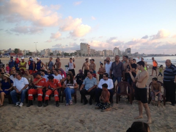 حضرالحفل أمين عام التنظيم الشعبي الناصري الدكتور أسامة سعد والمسؤول السياسي للجماعة الإسلامية في الجنوب الدكتور بسام حمود ومسؤول خفر السواحل في الجنوب النقيب هيثم سويد وممثلة شركة NTCC السيدة نسرين غزاوي ، وعدد من أعضاء المجلس البلدي ,قيادة فوج إطفاء صيدا القديمة وفرق الطوارىء البلدية وفريق الإنقاذ البحري في المسبح الشعبي وبمواكبة دوريات فرقة بحرية الدفاع المدني في الجية ومؤسسات صحية وهيئات إسعاف وهيئات إجتماعية وشخصيات.