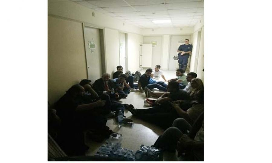 تم رمي عبوات المياه على عناصر قوى الأمن من قبل بعض المواطنين، أمام مبنى وزارة البيئة