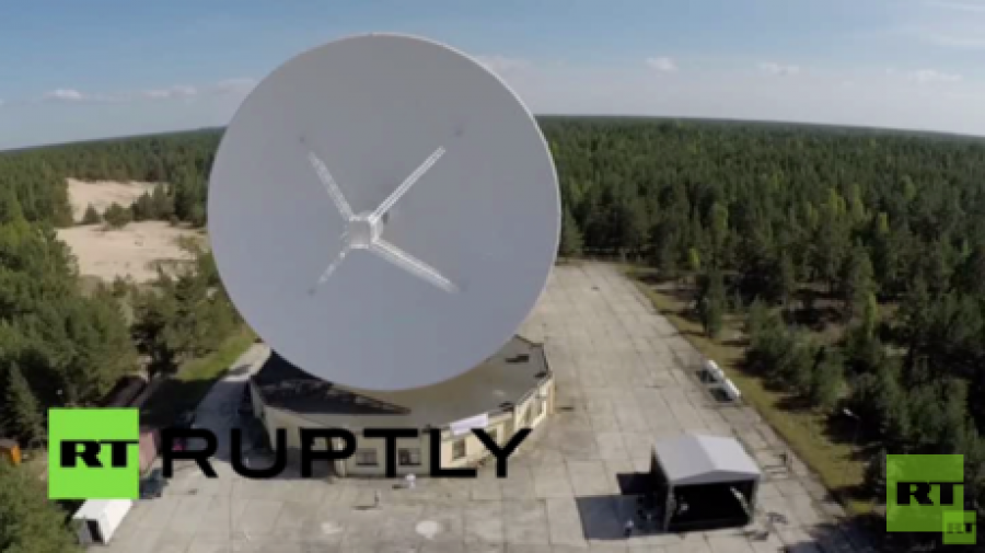 صور مقطع الفيديو هذا بعد إكمال أعمال التحديث لهوائي المركز الذي يبلغ قطره 32 مترا ويعمل في مجال الموجات السنتيمترية وهو قابل للتحريك. أنشئ المركز في أيام الحقبة السوفييتية وسيستخدم الهوائي المنصوب فيه، ويعتبر ثامن أكبر هوائي في العالم، لاستكشاف الفضاء.