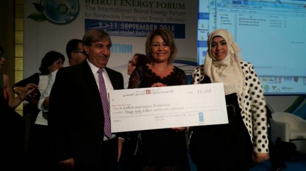 وتسلمت الجائزة عن مؤسسة الثقافة والعلوم السيدة شادن جباعي ضمن منتدى بيروت الدولي السادس للطاقة المتجددة الذي انعقد مؤخرا في فندق لو رويال -ضبية بحضور مسؤول مكتب المؤسسة الدولية للتمويل في لبنان (IFC) توماس جاكوبس البروفسورة في الإدارة في الجامعة الاميركية في بيروت الدكتورة ديما جمالي، رئيس اللجنة التنفيذية الدولية في البنك اللبناني الفرنسي اسكندر موريس، ورئيسة خدمات البطاقات في المصرف السيدة ميرنا وهبي، الاعلامية بولا يعقوبيان، نائب الممثل المقيم لبرنامج الامم المتحدة الانمائي في لبنان المهندس ادغار شهاب، وأعضاء الهيئة الادارية في مؤسسة الثقافة والعلوم ومجموعة من المؤسسات والجمعيات.