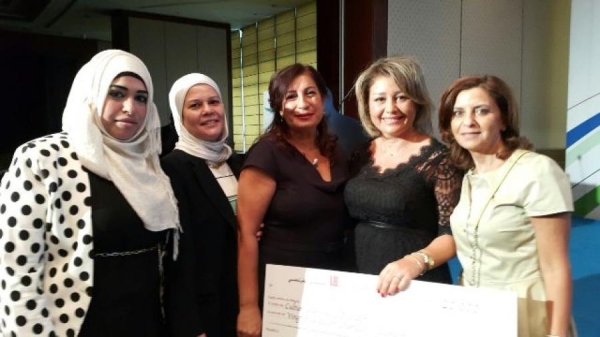 وألقت شادن الجباعي كلمة مؤسسة الثقافة والعلوم مقدمة عرضا مسهبا عن المؤسسة وشرحا عن المشروع الفائز واهدافه .ومن ثم تسلمت الجائزة من شهاب ووهبي .