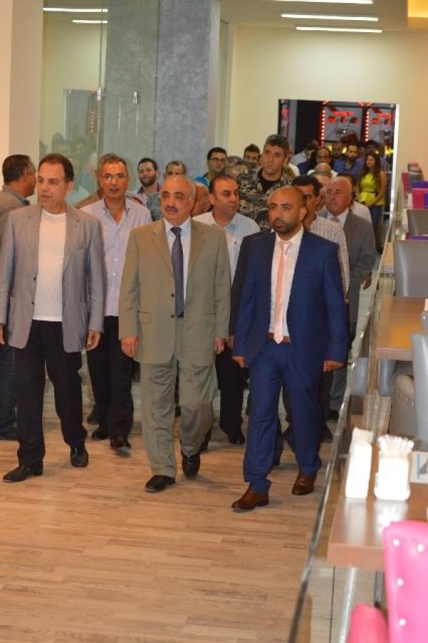 بعد قص شريط الافتتاح، جال الحجار والصالح والحضور في ارجاء مركز "The Link" للبولينغ الذي يقوم على مساحة 2000 متر مربع، ويضم 16 خطاً لألعاب البولينغ الحديثة من ماركة