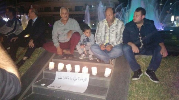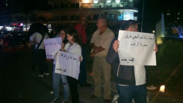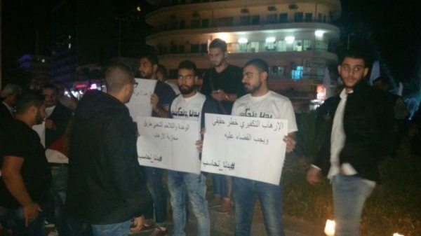وقد اضاء عشرات الشبان من حملة "بدنا نحاسب" ومدينة صيدا شموعا وحملوا لافتات تدين الارهاب والارهابيين.