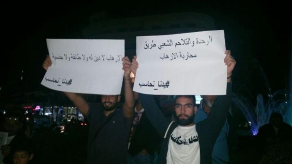 من صيدا، هنا برج البراجنة" نظمت حملة "بدنا نحاسب" في ساحة النجمة وسط مدينة صيدا وقفة حداد على ارواح شهداء تفجيري برج البراجنة في الضاحية الجنوبية لمدينة بيروت وتضامنا مع عوائل الشهداء ورفضا للارهاب التكفيري المجرم.