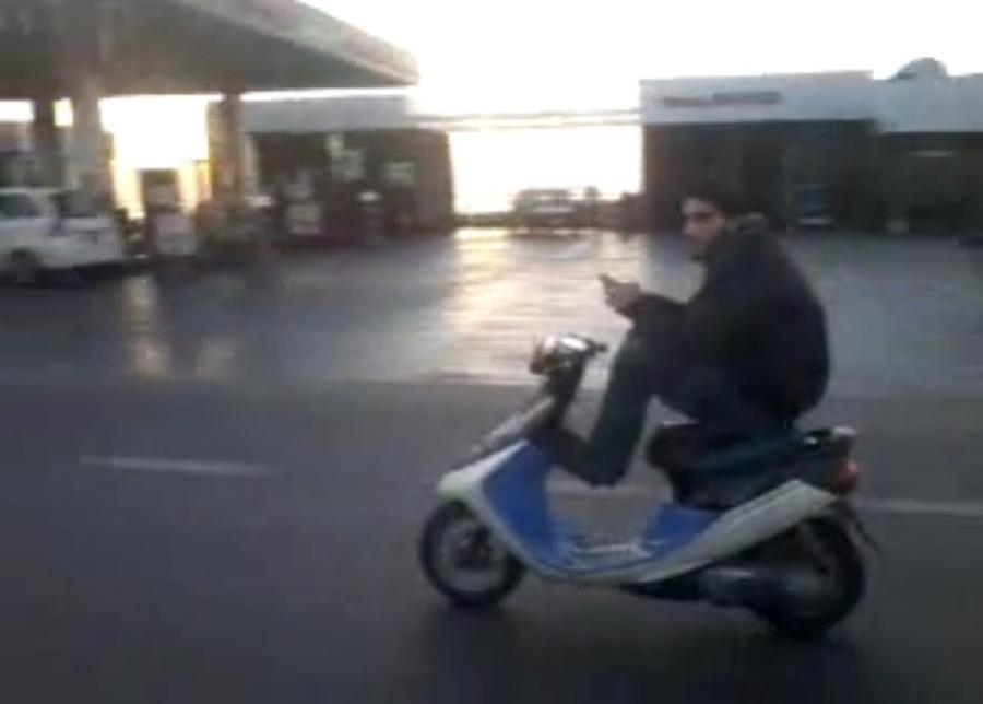 بالفيديو... يقود دراجته النارية برجليه بسبب الواتس اب