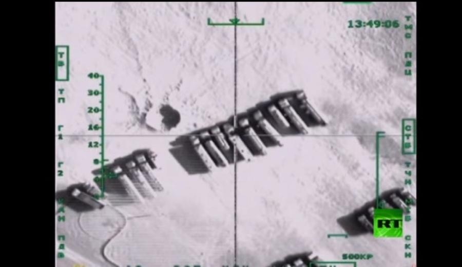 شاهد بالفيديو.. المقاتلات الروسية تدمر نحو 500 من صهاريج داعش لتهريب النفط