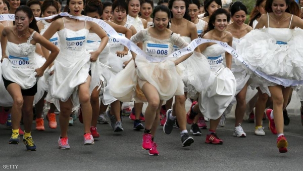 تشتد المنافسة بين مجموعة من العرائس اللواتي يتنافسن على سباق للسرعة في العاصمة تايلاند، بانكوك، واحتدمت المنافسة بعد الإعلان عن قيمة الجائزة، وهي مليون بات تايلندي أو ما يعادل نحو 28 ألف دولار أميركي.