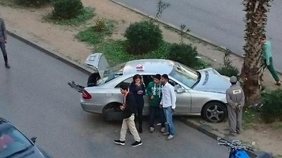 وقد اصطدمت السيارة بشجرة نخيل وسط الطريق واقتصرت الاضرار على الماديات.