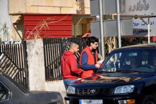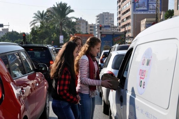 طلاب الانجيلية في صيدا وزعوا الحلوى على السيارات لمناسبة الأعياد