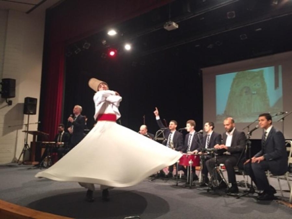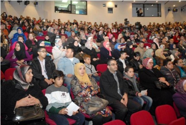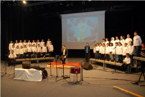 وقدمت فرقة المادحين للأخوين مزرزع مدائح نبوية وتواشيح من وحي المناسبة ولوحات تعبيرية تراثية وصوفية " لوحة التنورة ". وعرضت على شاشة في خلفية المسرح بطاقات معايدة ورسومات من اعداد اساتذة الفنون في المدارس المشاركة .