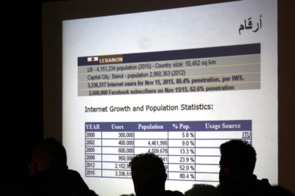 وعرض سلامة power point حول وسائل التواصل الاجتماعي في لبنان، عارضاً على الحضور أرقاماً تشير إلى تطور أعداد مستخدمي مواقع التواصل الاجتماعي تحديداً بين عامي 2000 و2015، حيث تضخم عدد المستخدمين حوالي 10 مرات عن المراحل السابقة.