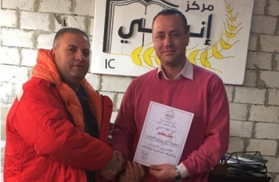 وقد تم تقديم بطاقة شكر باسم فوج الإنقاذ الشعبي للأنسة ليلى البزري أمينة سر المركز والأستاذ وسيم وني لجهودهما في إنجاح هذه الدورة .