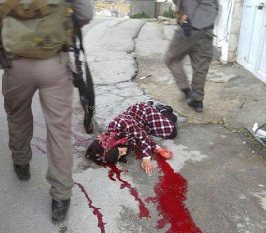 قوات الاحتلال تترك فتاة تنزف بعد إطلاق النار عليها وسط الخليل لكل الناس اللي مشغولين بالدب الأحمر والورد الأحمر وبتدفعوا دولارات... اللون الأحمر في ناس بتدفعه بالدم...