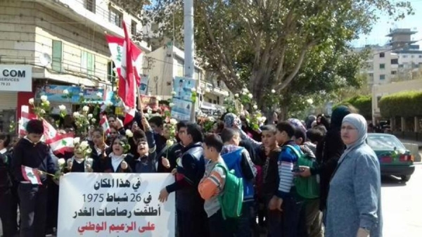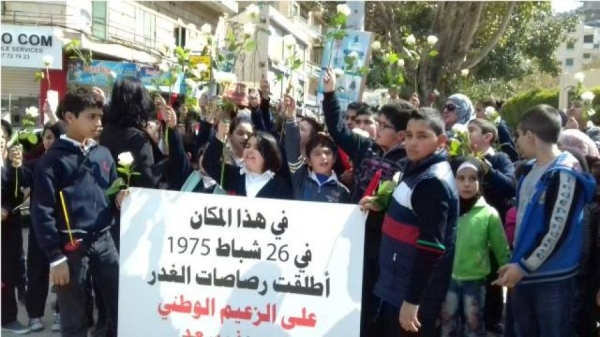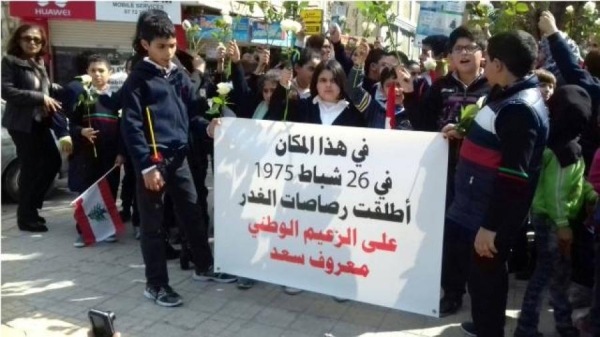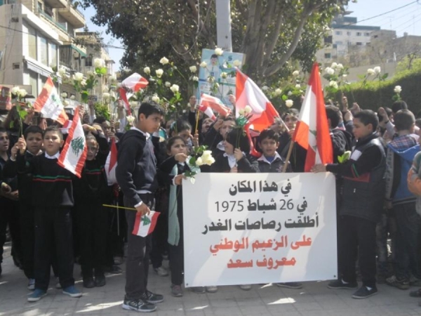 في الذكرى الحادية والأربعين لاستشهاد المناضل الوطني معروف سعد قام تلامذة مدارس مؤسسة الشهيد معروف سعد بزيارة المكان الذي أصيب فيه الشهيد، رافعين الأعلام اللبنانية، والورود البيضاء، ولافتات كتب عليها: "في هذا المكان في 26 شباط 1975 أطلقت رصاصات الغدر على الزعيم الوطني معروف سعد". وقد رافق التلامذة مديرة المؤسسة منى سعد والمربيات والأساتذة والمدراء وأنشدوا النشيد الوطني اللبناني.