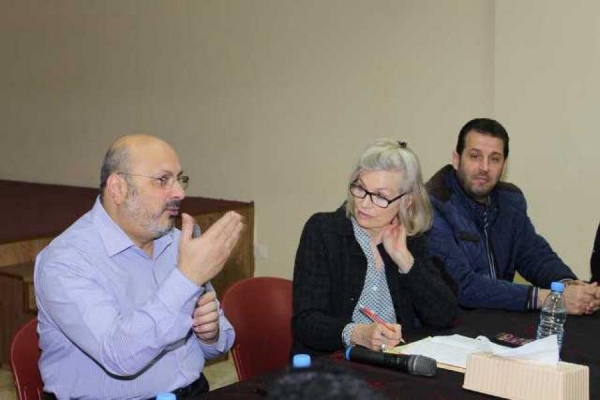 ضم اللقاء عدداً من أفراد الهيئة التعليمية يتقدمهم مدير المدرسة ومشرفة اللغة الإنكليزية