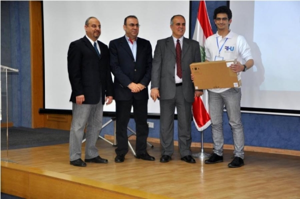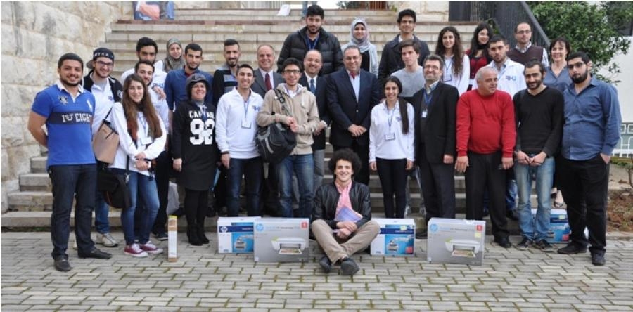 وفي الختام قام نائب رئيس الجامعة لشؤون التطويرالأستاذ هشام قبرصلي وعميد كلية الهندسة الدكتور هشام باشا وعميد كلية العلوم الدكتور محمد اللدن ورئيس اللجنة التنظيمية الدكتور جاد قزيلي بتوزيع الجوائز على الطلاب الفائزين . وهي عبارة عن جهاز كومبيوتر محمول" Laptop Hp" للأول عن كل فئة ، وطابعات كومبيوتر" Printer "تقدمة مجموعة شركات"Group ICC" الداعمة لهذا الحدث للفائزن بالمرتبتين الثانية والثالثة عن كل فئة .