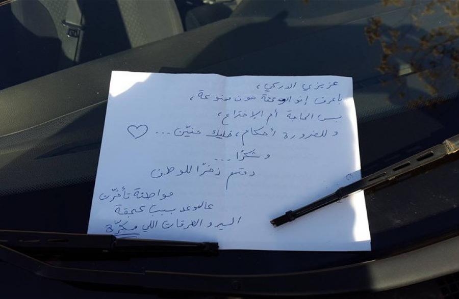 اهضم رسالة الى شرطي السير في مدينة بيروت، كتبتها مواطنة لبنانية، وتركتها على سيارتها.