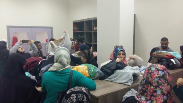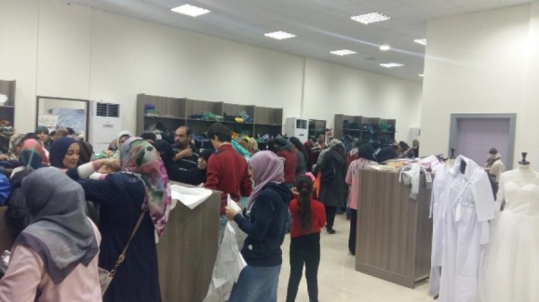 واستطاعت العائلات الدخول إلى السوق عبر قسيمة قدمتها لهم الجمعيات والمؤسسات، حدد خلالها إسم العائلة وعدد أفرادها. حيث تم عرض الملابس الجديدة والمستعملة بالإضافة للأحذية والشالات والجزادين النسائية.