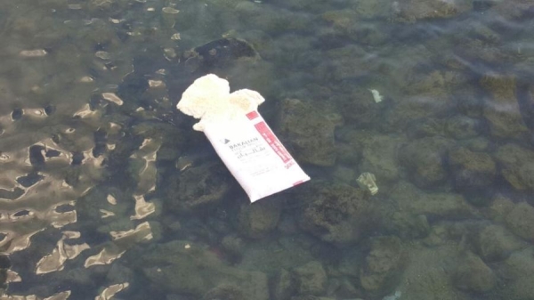بالصور- إلقاء أكياس طحين في حوض مرفأ صيدا