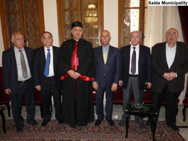 بلدية صيدا وجمعية التجار عايدتا المطرانين الحداد ونصار بالفصح المجيد