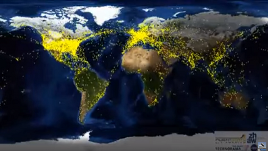 سجل علماء من جامعة زيورخ السويسرية فيديو يظهر حركة الطائرات حول العالم في 24 ساعة، وتبلغ مدة الفيديو دقيقة واحدة فقط.