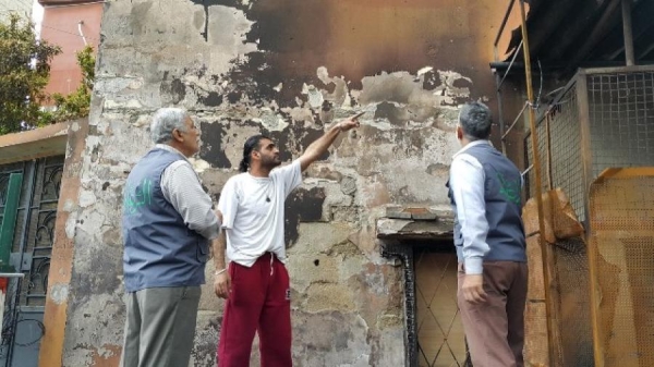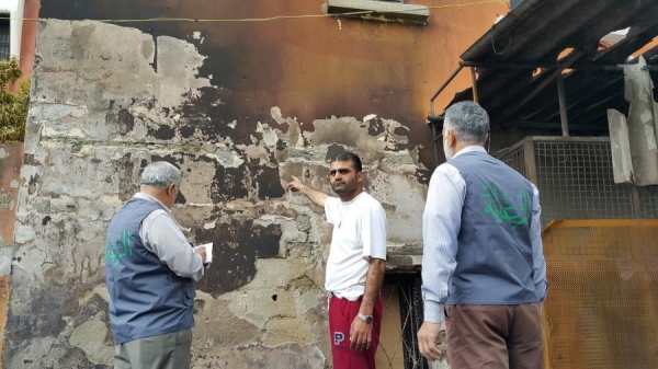 قام الوفد بمعاينة الأضرار التي ألمت بهم وتدعو الرعاية الهيئة العليا للإغاثة وفعاليات المدينة لضرورة التحرك سريعاً لترميم الحيطان والبيوت التي تضررت من جراء الإنفجار.