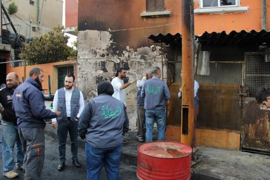 بعد حادث الإنفجار الذي ألمّ بمدينة صيدا البارحة في منطقة ساحة الأمركان، قام وفد من الرعاية بتفقد المكان صباحاً حيث جال على المنازل والمحال التجارية التي كانت قد تعرضت للإنفجار البارحة للإطمئنان على صحة المواطنين.