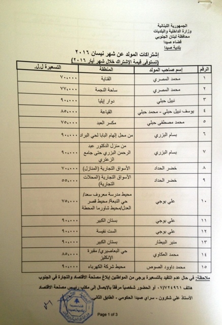 تعرض كل من الاستاذ فراس مهتار والاستاذ محمد النقوزي موظفو الدائرة الهندسية في بلدية صيداللاعتداء من قبل صاحب المولدات علي بوجي بحضور عدد من اصحاب المولدات. اثناء عرض التسعيرة الجديدة للمولدات وبسبب انخفاض عدد الساعات المقطوعة تم انزال تسعيرة المولدات للشهر الجديد, اعترض المدعو علي بوجي على هذه التسعيرة وطالب بزيادة حصته فقط. بعد ان رفض الاستاذ فراس هذا الطرح مؤكدا له بلباقة بان هذه الارقام تم اعتمادها من دائرة الهندسية وهي ارقام مدروسة جيدا, حصل مشادة كلامية باصوات مرتفعة داخل حرم البلدية حيث قال بوجي للموظف فراس مهتار: "انت اخرج من مكتبك وما دخلك بالتسعيرة" فتتدخل زميله الاستاذ محمد النقوزي فقال له بوجي: "انت اخرج ولما شوفك برا بدي افسخك شقفتين." مما اضطر عدد من الموظفين الى طرد بوجي من البلدية. على الاثر عقد اجتماع بكتب رئيس الدائرة الاستاذ زياد حكواتي الذي قال: نحن نتعرض دائما الى مضايقات من قبل بعض اصحاب المولدات بسبب طلبهم بزيادة التسعيرة مما يرهق المواطنين اقتصاديا وهذا الامر سيرفع الى رئيس البدلية لاخ الاجراءات المناسبة