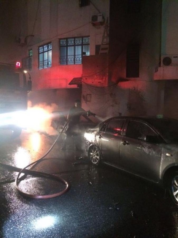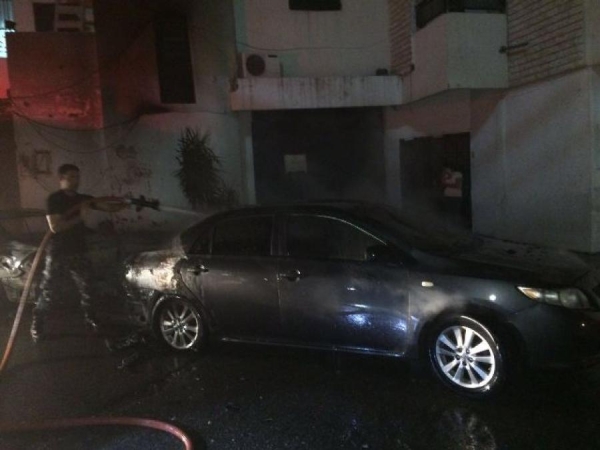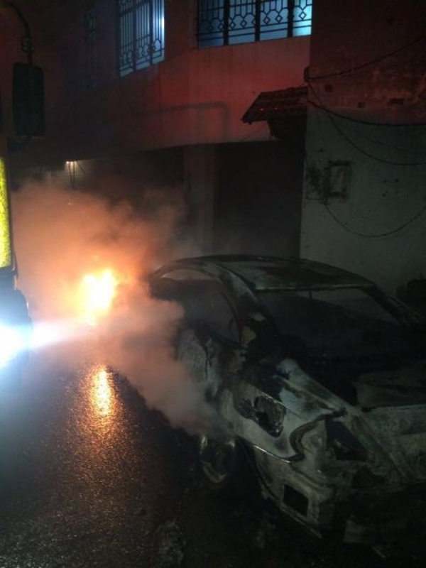 شب حريق مفاجىء في سيارة مرسيدس تعود للمواطنة فاطمة ح. قرب بناية البرج عبرا