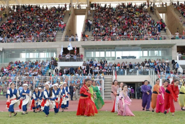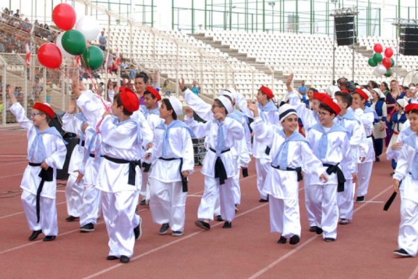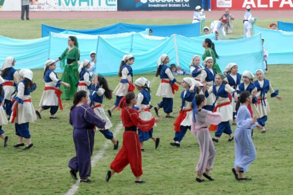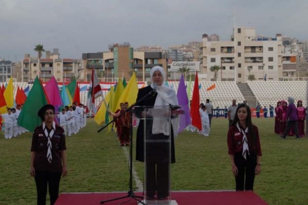 تحت شعار " إسمك يا صيدا" وأمام جمهور بالآلاف امتلأت به المدرجات الرئيسية لمدينة رفيق الحريري الرياضية قدم مئات التلامذة من عدد من مدارس صيدا والجوار الرسمية والخاصة والأونروا لوحات فنية وتراثية راقصة في اطار مهرجان الفولكلور الوطني المدرسي الذي اقامته الشبكة المدرسية لصيدا والجوار بالتعاون مع بلدية المدينة برعاية رئيسة لجنة التربية والثقافة النيابية النائب بهية الحريري ، فتحولت ارض ملعب صيدا الى مساحة تضج بالفرح والابداع الذي عبرت عنه مواهب التلامذة ولوحة فنية وطنية رسمتها قاماتهم وازياؤهم الملونة، وحضر فيها تراث صيدا وبحرها وصيادوها وعمالها والتراث الشعبي اللبناني بأطول حلقة دبكة شكلتها المدارس المشاركة .