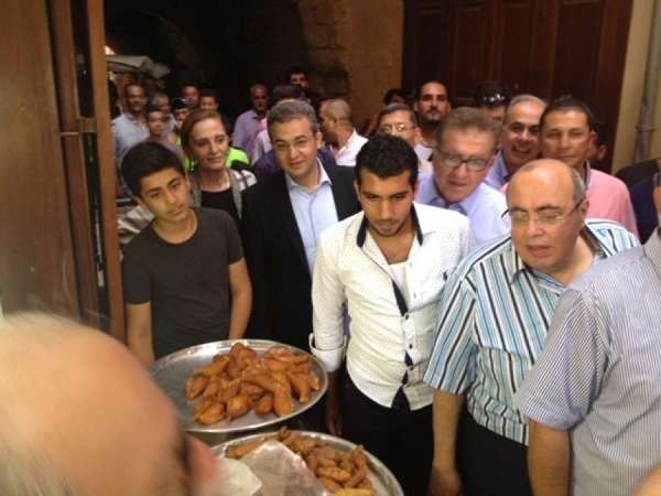 عمر مرجان يجول في سوق صيدا معايدا بشهر رمضان