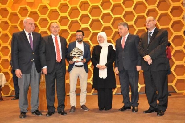 وفي نهاية حفل التخرج قدم داود بمشاركة النائبين الحريري والشاب وعباس درعا تكريميا للفنان خباز.