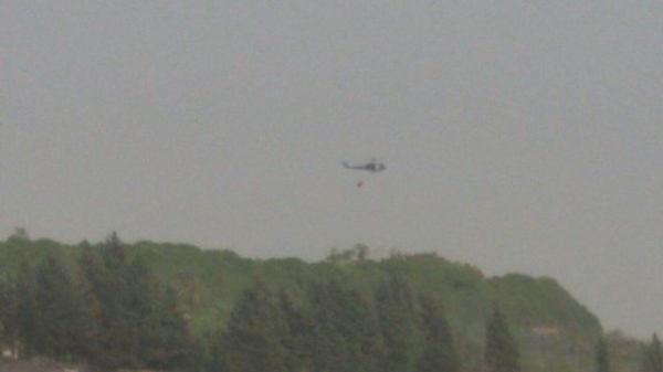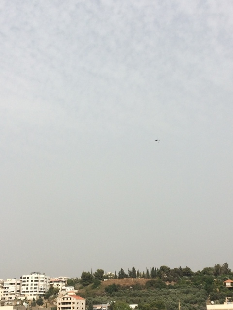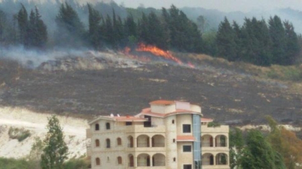 تصاعد الدخان في سماء مجدليون من حريق ناتج عن ارتفاع الحرارة والهواء الساخن في بستان بجانب فيلا النائب بهية الحريري.