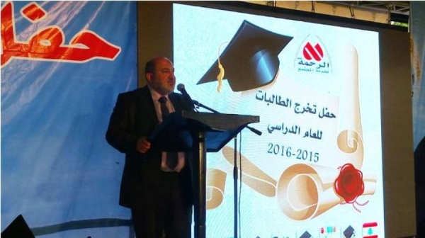 ثم تحدث الاستاذ هاني ابو زينب رئيس مجلس امناء الهيئة الاسلامية للرعاية، حيث اثنى على دور التربوي الذي يلعبه مركز الرحمة في ظل التسرب المدرسي الذي تشهده المنطقة، كما وجه تقديره لجميع العاملين والمتطوعين في المركز، وختم كلامه بكلمة موجه الى الطالبات الخريجات قائلا:"اليوم تعودون الى منازلكم حاملين طموحات واحلام التطوير الايجابي فسيروا بهمة عاليه، عين الله ترعاكم..