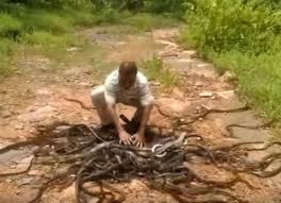 تداول رواد مواقع التواصل الاجتماعي مقطع فيديو لحارس إحدى الحدائق الهندية وهو يطلق سراح أكثر من 300 أفعى دفعة واحدة في غابات بوبال.
