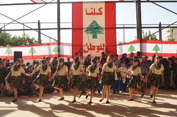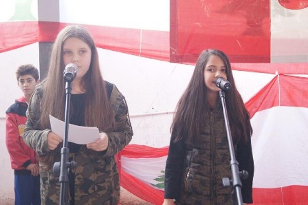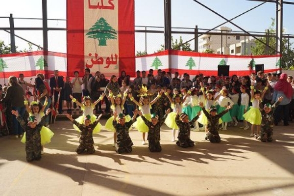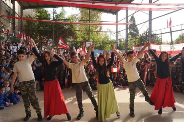 وقدم اكثر من 1400 تلميذ وتلميذة شاركوا في الحفل عروضا فنية وفولكورية واغاني وطنية مثل " طلعنا على الضو طلعنا عالحرية ، بوس العلم وعلَي الراية ،بكتب اسمك يا بلادي " ولوحات تعبيرية من اجواء المناسبة ، فقام بعضهم بتشبيك اياديهم امام العلم اللبناني مجسدين شعار "الايد باليد"، فيما قدم كورال من المدرسة اغنية "يا لبنان رح ابقى حدك"، وقام آخرون بتشكيل ارزة لبنان على لوحة بعبارات من وحي الاستقلال باللغتين الفرنسية والانكليزية.
