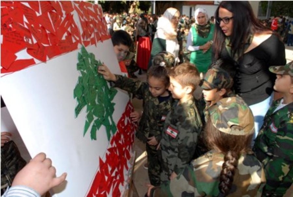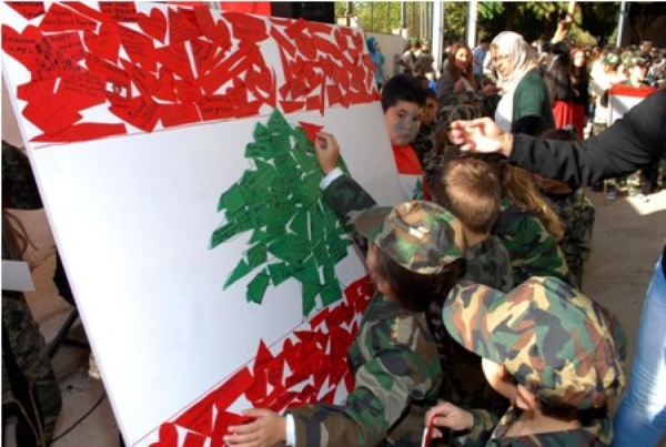 تحت شعار " الايد بالايد " احتفل طلاب مدرسة الحاج بهاء الدين الحريري في صيدا ومن مختلف الحلقات والمراحل بعيدي العلم والاستقلال على طريقتهم، فتحولت باحة ملعب المدرسة الى ساحة عرض تشكيلات للطلاب بالزي العسكري على وقع قرع الطبول والموسيقى الوطنية . فيما توزع باقي الطلاب على مجموعات شكل كل منها لوحة وطنية تظللهم جميعا الأعلام اللبنانية التي رفعوها بالمناسبة والتي ارتسمت ايضا على وجنات وجباه اطفال الروضات مع عبارة كلنا للوطن وهم يرتدون الزي العسكري .