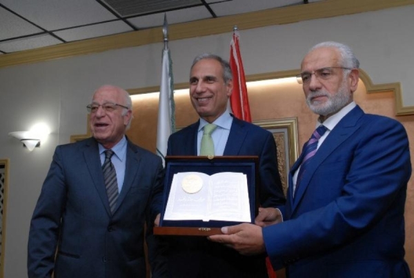وفي الختام قدم القطب بمشاركة السروجي درعا تكريمية الى شرف الدين عربون تقدير بإسم جمعية جامع البحر ومشروع النارنج.