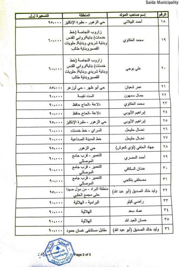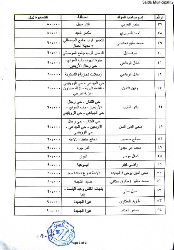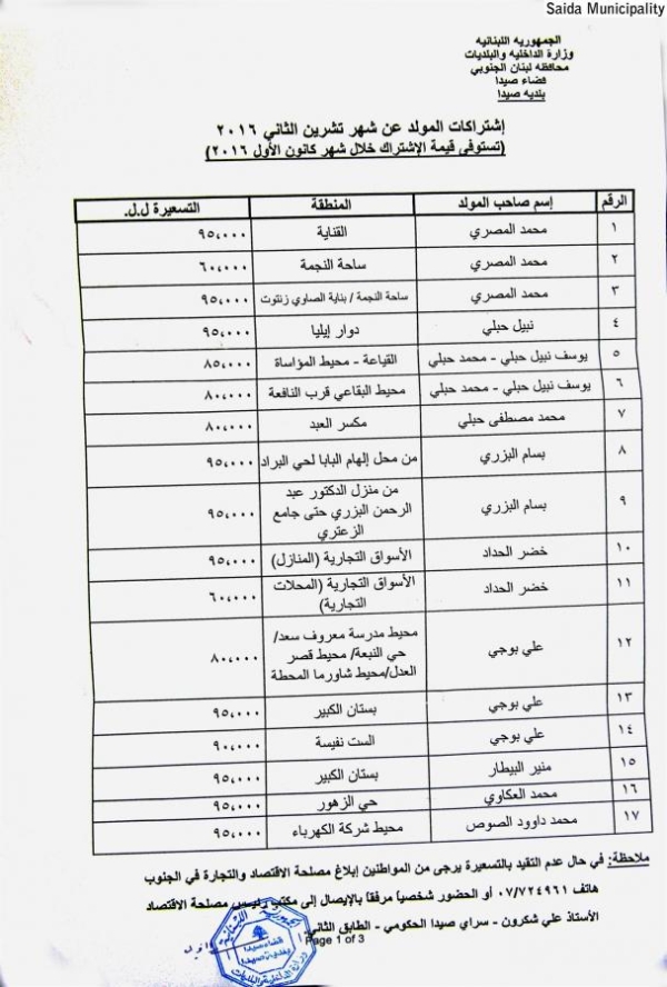 بلدية صيدا عممت جداول تكلفة إشتراكات المولدات الكهربائية عن شهر تشرين الثاني 2016 وتستوفى في شهر كانون الأول 2016